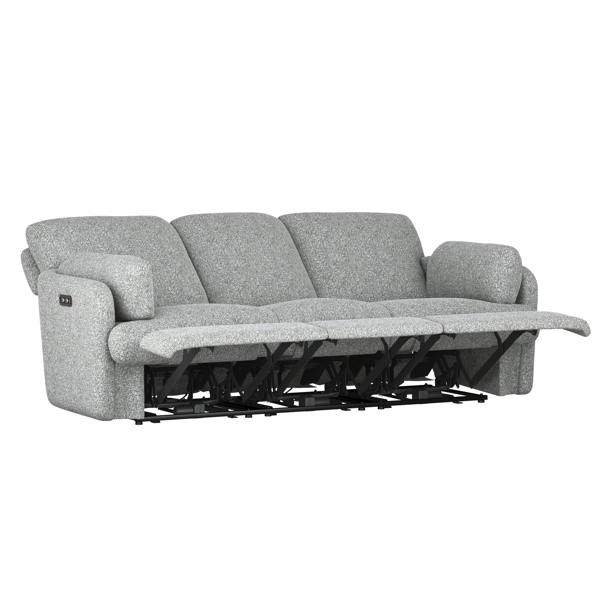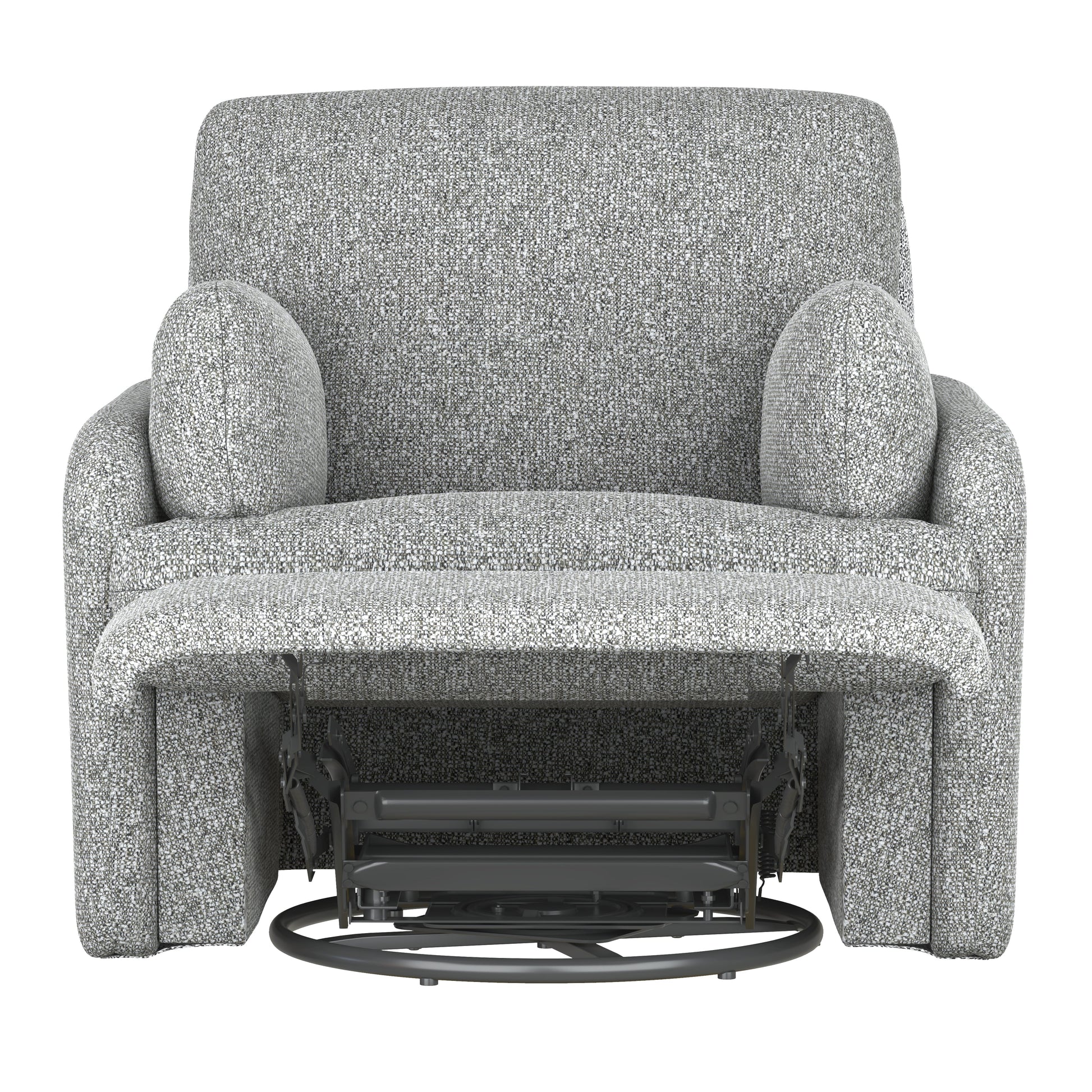 Albus blends plush comfort with modern motion features in a design made for everyday ease. Upholstered in a softly textured gray fabric, each piece features generously padded backs and loose arm cushions with hidden storage tucked beneath. The console loveseat includes a soft-close center compartment and a tilt-out cover that conceals two stainless steel cupholders for a cleaner look. Power recline brings smooth, push-button comfort to the sofa and loveseat, while the recliner chair offers manual reclining along with swivel and gliding motion. With its welcoming shape and pillowy build, the Albus collection is grounded by sinuous springs and pocketed coils for lasting support beneath the softness.