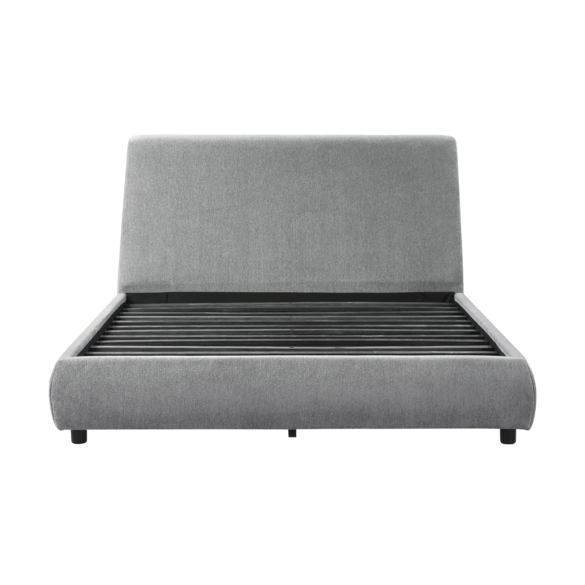 The Alford Collection’s design is comprised of unfettered lines and soft touch, creating an elegant addition to any modern bedroom. The unfettered profile of the headboard’s profile solidifies the collection’s modern aesthetic. Gray chenille fabric upholstery covers the ultra-low platform bed’s headboard, footboard, and rails.