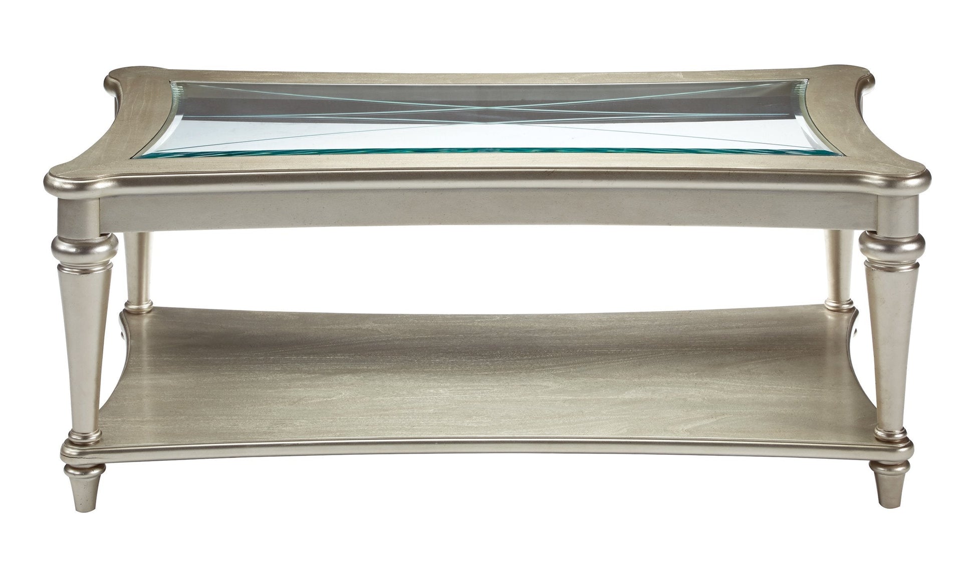 Sculpted lines, glorious silver finish, and etched glass combine to create this opulent living room table. Place it in your living room and it will practically glow, drawing every eye to its beauty. The Carmel Coffee Table is an extraordinary piece that will brighten your décor.