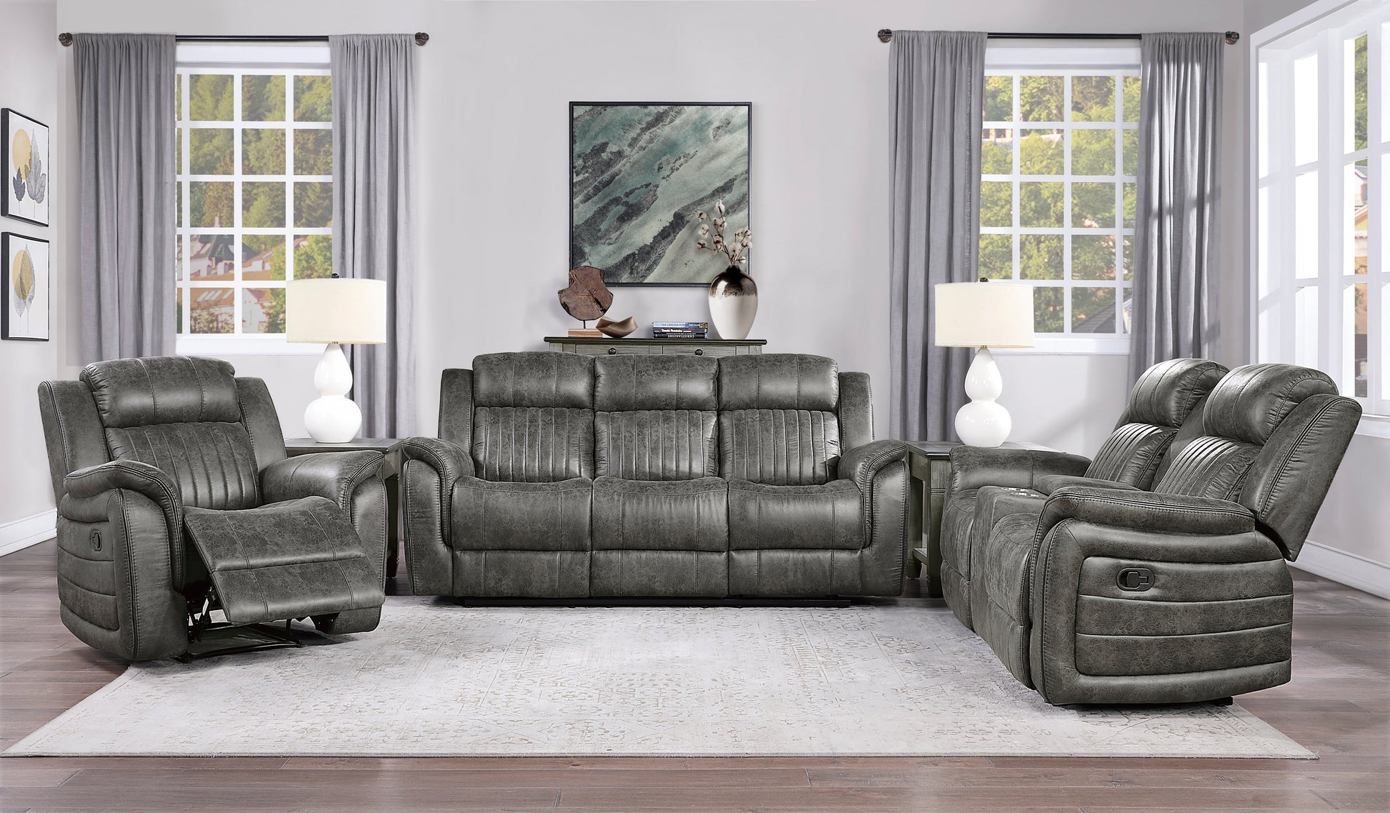The design of the Centeroak Collection provides a platform for your relaxing downtime. From the classic transitional style to the versatile neutral color of the brown-ish gray or sandy brown polished microfiber fabric covering, this collection is the perfect addition to your living room. Plush seating features vertical tufting, pillow-top arms, each enhanced by the dual end recliners of the sofa and love seat, and the reclining chair. Creating additional function is the console of the love seat providing secure placement of beverages and lift top hidden storage. The reclining mechanism is engaged with a pull of the side mounted tabs, taking you from seated to prone in an easy motion.