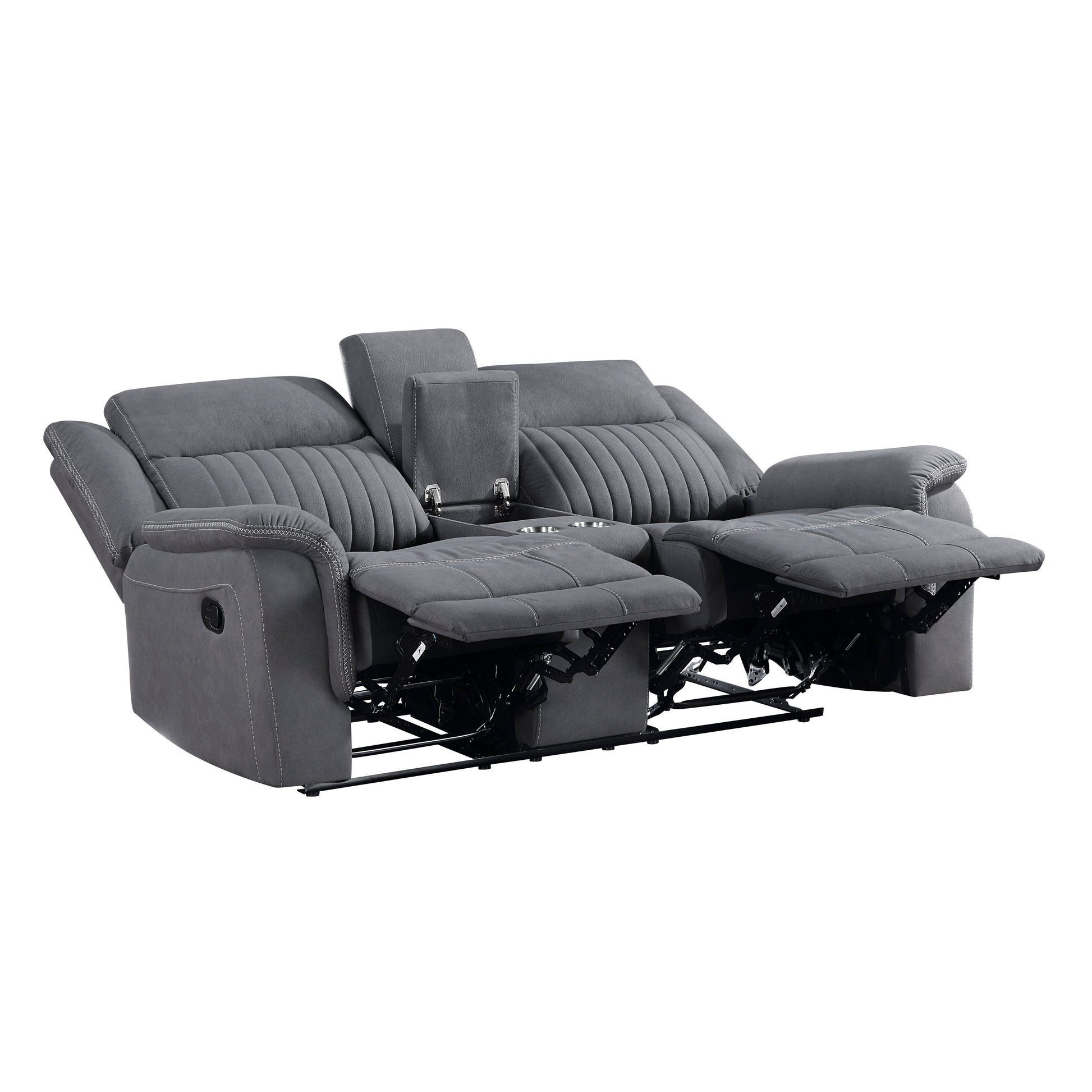 Convenience and comfort provide the basis of the design of the Dean Collection while the unfettered lines of modern design lend a casual air to the seating group’s profile. The sofa and love seat feature dual reclining ends with the love seat featuring a console with cup holders and hidden storage space while the reclining chair allows for solo seating within your space. Manual motion mechanisms allow for your reclined experience and are engaged with a pull of the side mounted tab. Polished microfiber presents as a neutral palette for your home’s subtle modern style.