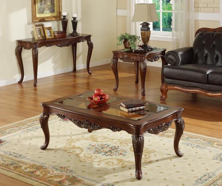 When adding the personal touches to your living space that reflect the warmth and elegance of your home, the Ella Martin Collection is the perfect traditional table offering. Featuring a warm brown cherry finish, smoked glass, and gold tipped acanthus leaf motif.