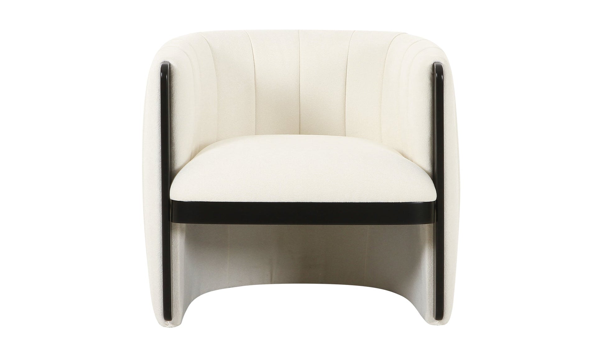 Featuring exquisite channel detailing, the Francis accent chair adds a touch of visual intrigue to the soft and textured fabric, while the black wood finish adds a striking contrast, infusing a sense of depth and complexity.