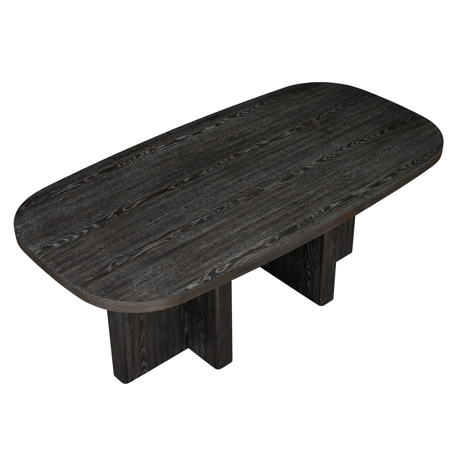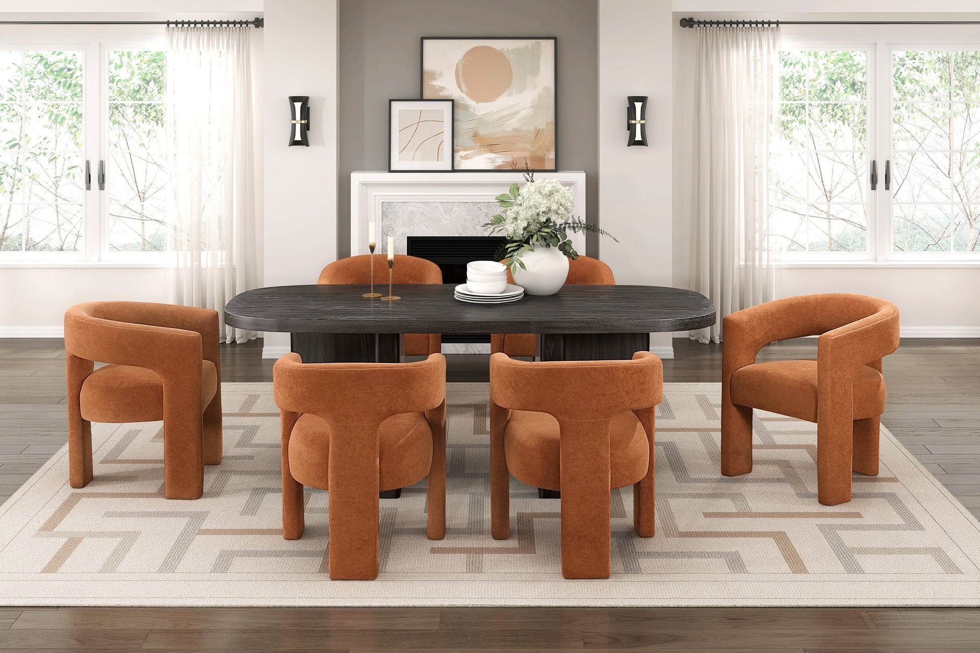 Elevate your home with this stunning dining collection, blending sophisticated modern design with inviting textures. The centerpiece is a dining table crafted from oak veneer, wood, and engineered wood with an elegant ebony finish and a textured surface, designed to seat six comfortably. The coordinating side chairs and benches are exquisitely upholstered in a soft, light-hued boucle fabric, featuring unique gentle curves and a minimalist silhouette. Each piece is built on a sturdy plywood frame for durability, with the chairs and benches arriving fully assembled for instant enhancement of your space.