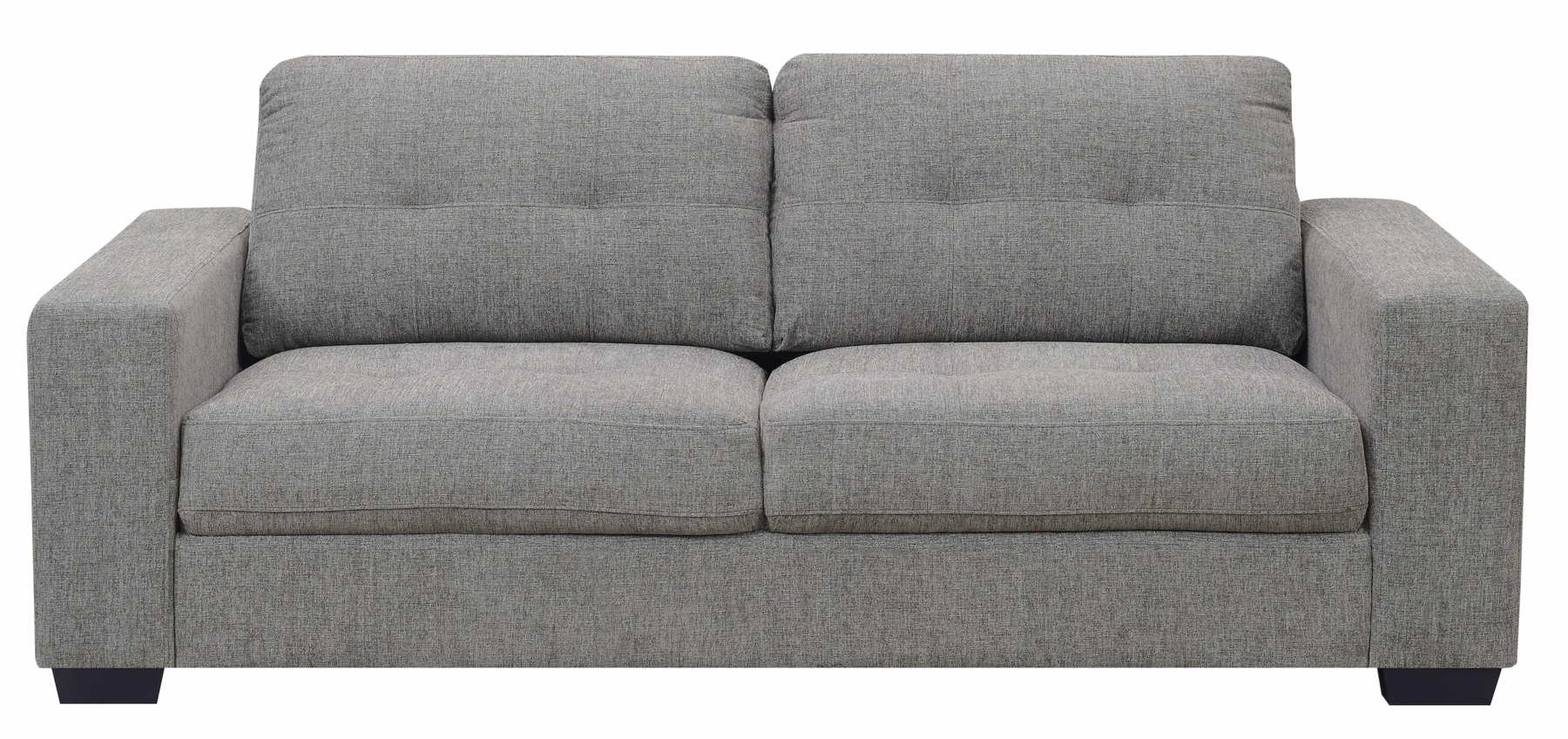 The Metro is a stationary, contemporary living room collection. The grey color is made of high quality chenille fabric. The Metro sits on wooden legs that give it some elevation making the seating profile quite comfortable.