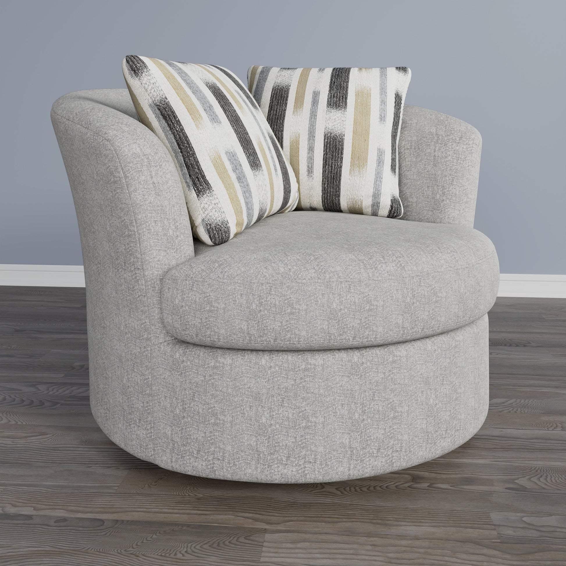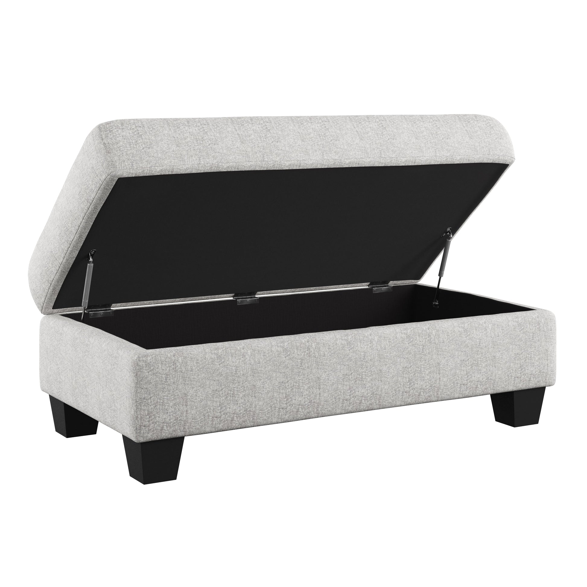 The Myles collection brings a sense of relaxed sophistication to your space. The chaise sectional, featuring contemporary tufting on both cushions and frame and sturdy solid wood legs, strikes a balance between modern design and lasting comfort. A storage cocktail ottoman keeps essentials close at hand yet out of sight. A roomy swivel chair invites you to sink in and unwind, offering a cozy spot to relax or enjoy conversation. Upholstered in light gray chenille with a faint patterned texture, the Myles collection is designed for spaces where style meets everyday living.