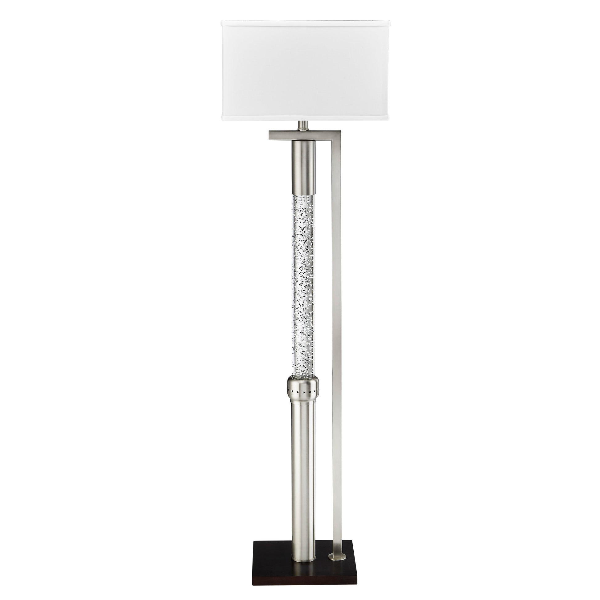 This accent lighting can change the ambiance of any room. Its ultra modern design showcases sparkling decorative mood light, with tiny rippling water-droplets to simulate the soothing dancing water motion. Beautifully crafted stand features high quality satin nickel finish metal and glass, and an elegant rectangular lamp shade on black base. It offers flexible lighting solution: a floor lamp with a main light that is suitable for reading, perfect for a night light, and to create the mood in any room.
