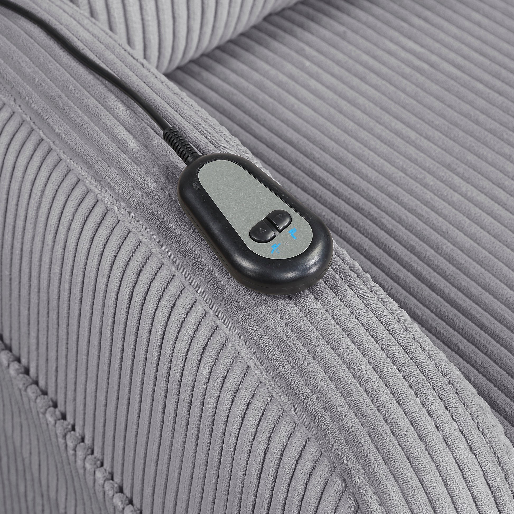 Experience the ultimate in comfort and convenience with this plush corduroy power lift chair, designed to provide both luxurious relaxation and effortless mobility. The soft, ribbed corduroy fabric offers a cozy and inviting feel, while the foam padding over pocket coils ensures exceptional support for hours of comfort. With a simple push of a button, you can effortlessly transition from a seated position to a gentle, standing lift motion, making it ideal for those with limited mobility. The attached armrest features a convenient magazine pocket, keeping your favorite reading materials close at hand. Constructed with a robust plywood frame and a metal-reinforced seat, this chair is built for durability and reliable performance.