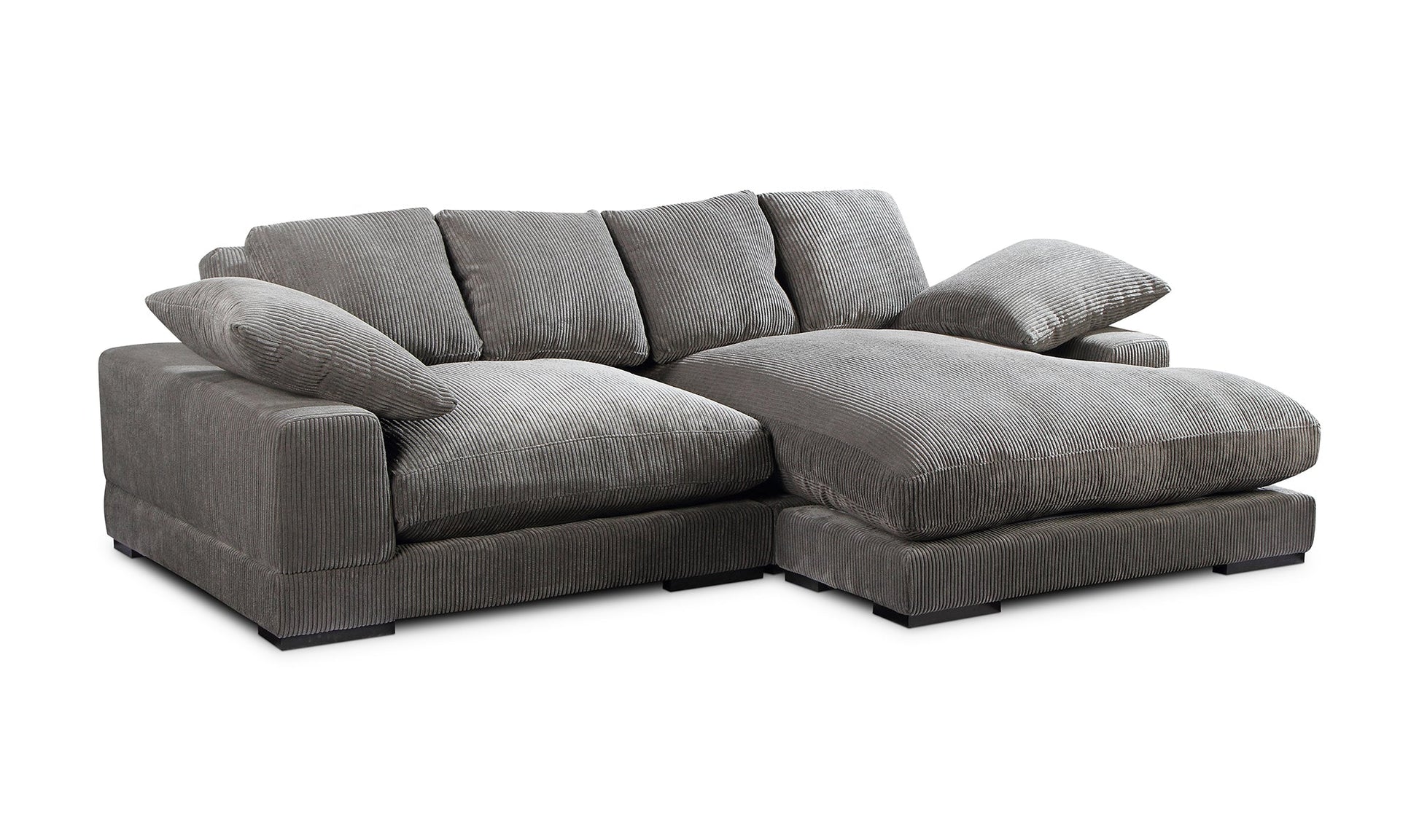 A fusion of comfort and elegance with clean lines and plush cushions, the Plunge sectional is masterfully crafted to maximize space and provide unparalleled relaxation. Its versatile flip chaise feature allows a left or right-side orientation that effortlessly adapts to create a sanctuary of style and repose, while its improved channeling and filling distribution ensures soft landings and comfort for years to come.