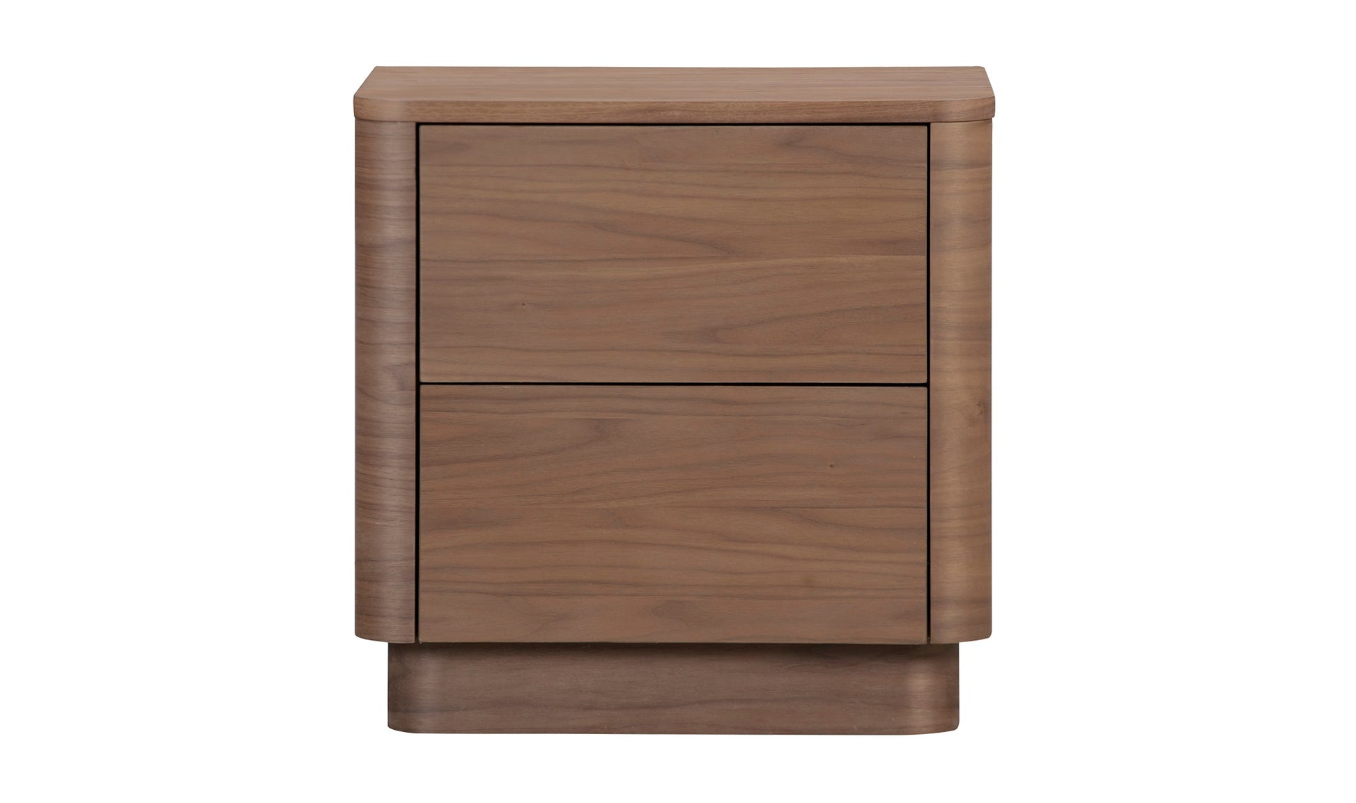 A soft, natural look for your bedroom. The Round Off collection is a showcase of walnut, with the beautiful dark tones of the grain matched to a simple, comforting design. This bed comes in queen and king and features a low build and softly rounded corners, with a headboard, sideboards, and footboard that perfectly frames your mattress. As part of the Round Off bedroom collection, pair it with the nightstand and dresser for the complete look. Natural beauty and character come together to promote mellow relaxation in the most personal room of your home.