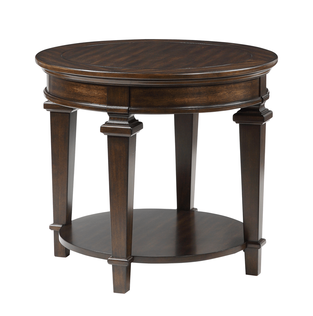 Classic design elements create a timeless look for your living room making the Tobias Collection a stylish and functional addition. The round cocktail table features castors, which allow for ease of movement within your available space. The round end table has an open display shelf, creating the perfect space for display of your favorite decorative items. Birch veneer covers the collection with an espresso finish utilized to highlight the distinctive grain of the wood.